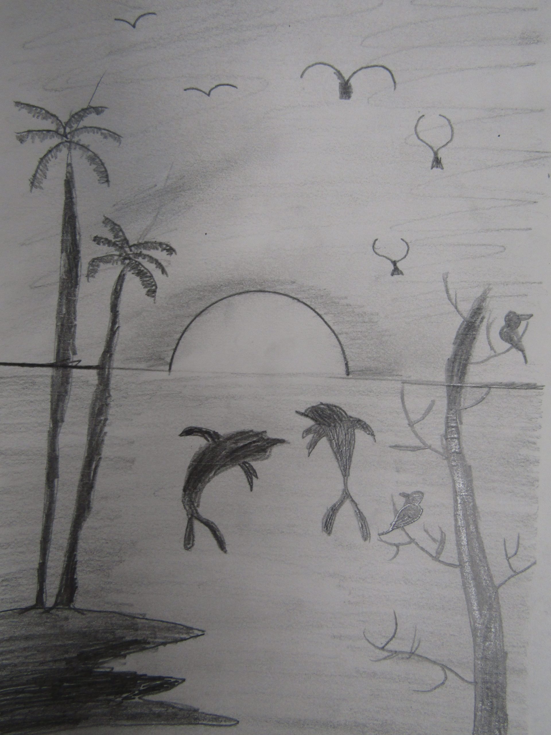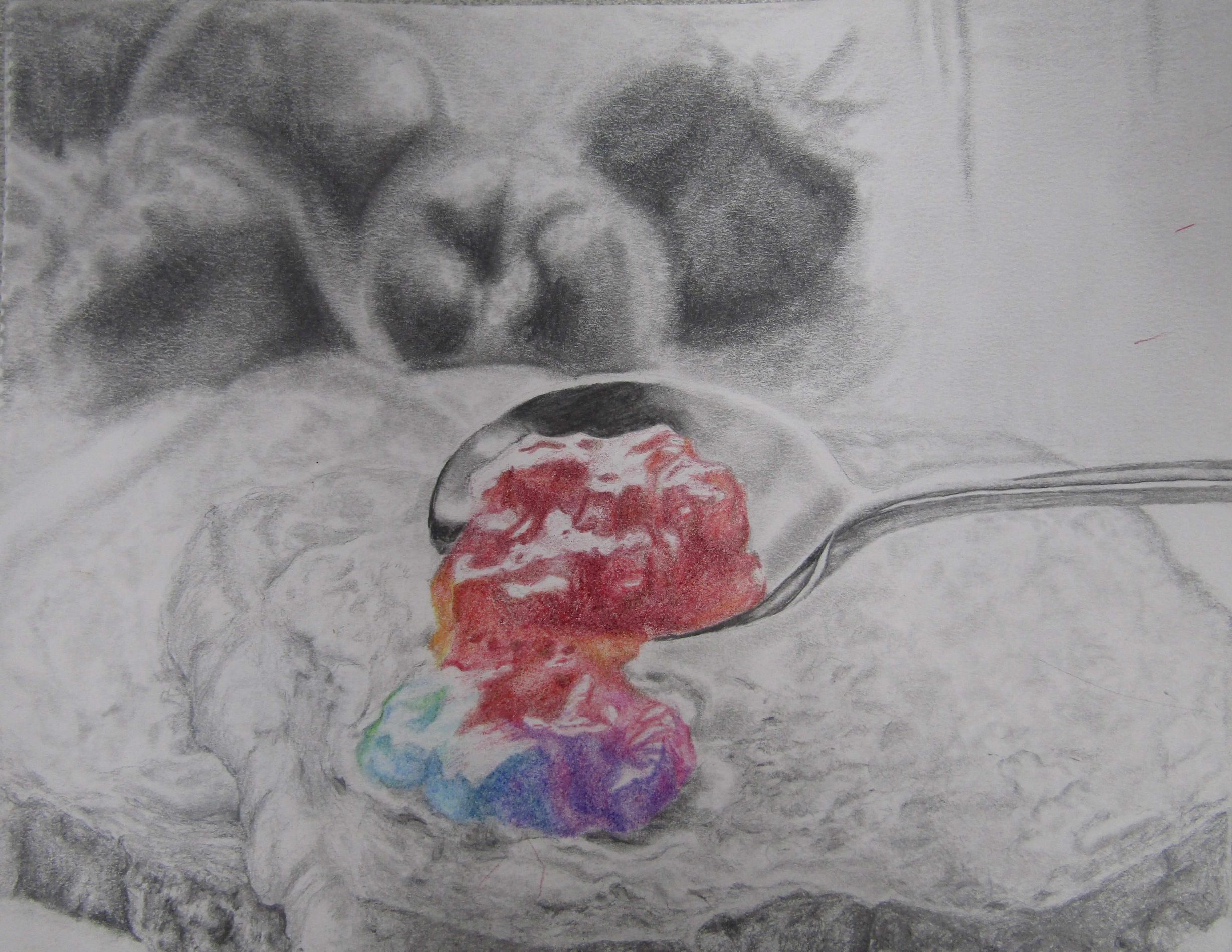 Coloured pencils and Pencil, 19cm x 21cm