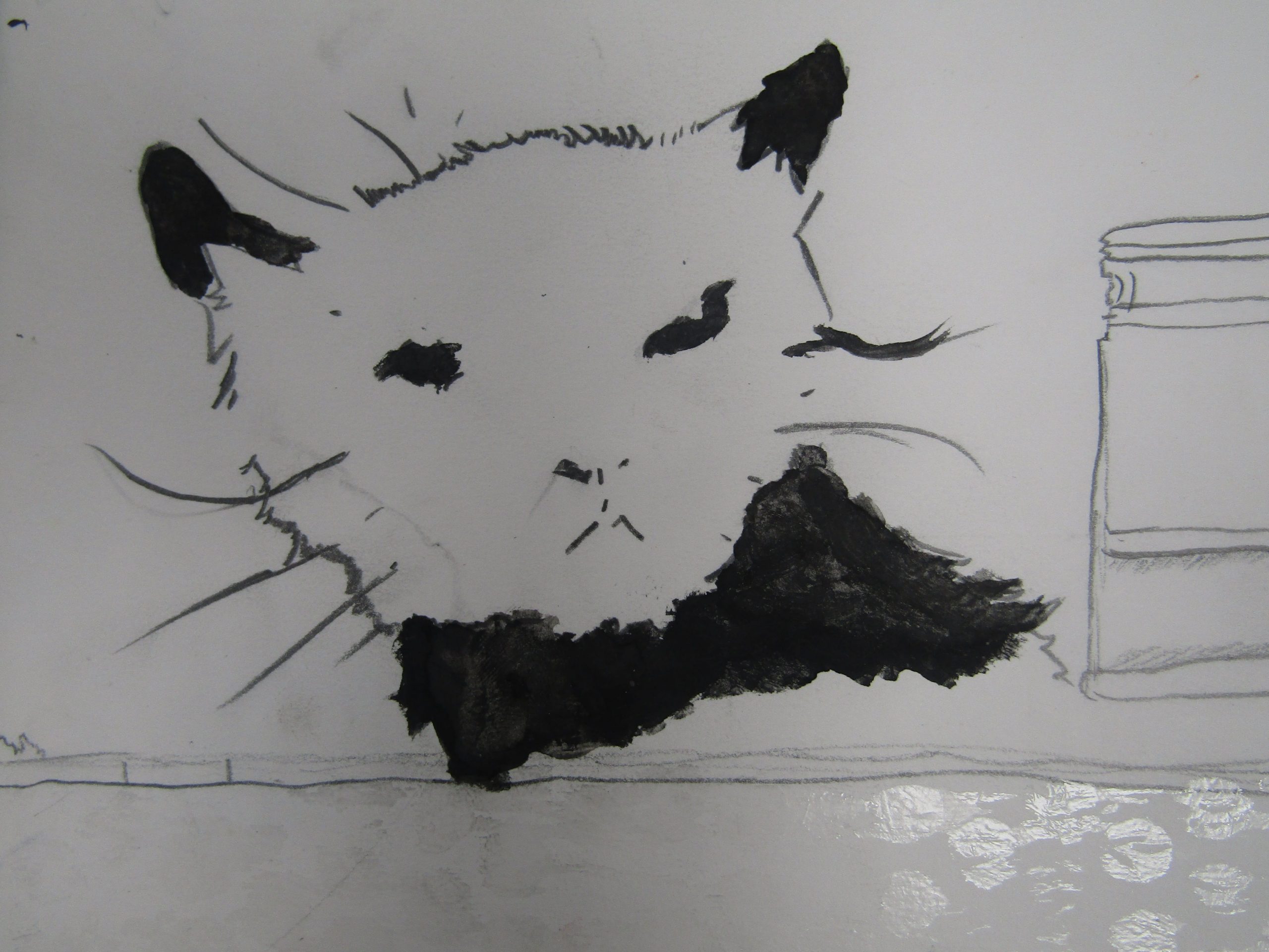 Charcoal pencils, white charcoal pencils and pencils, 29cm x 21cm