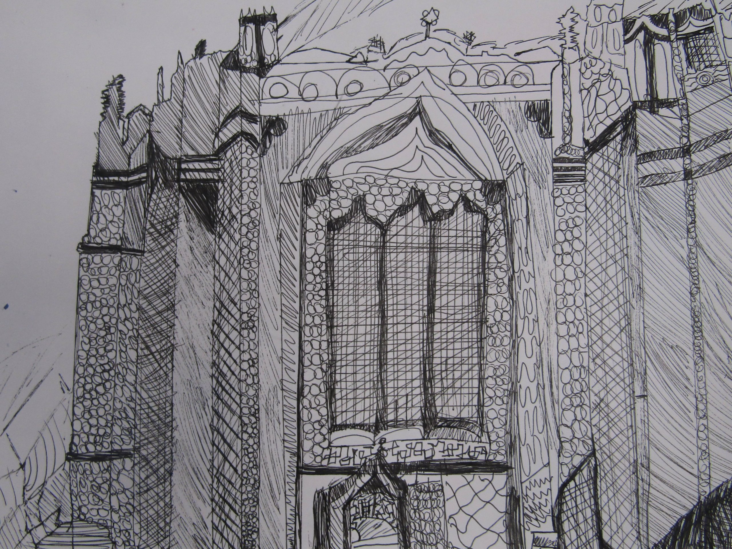 Pencil, pen, colouring pencils and Sharpie, 13cm x 20cm