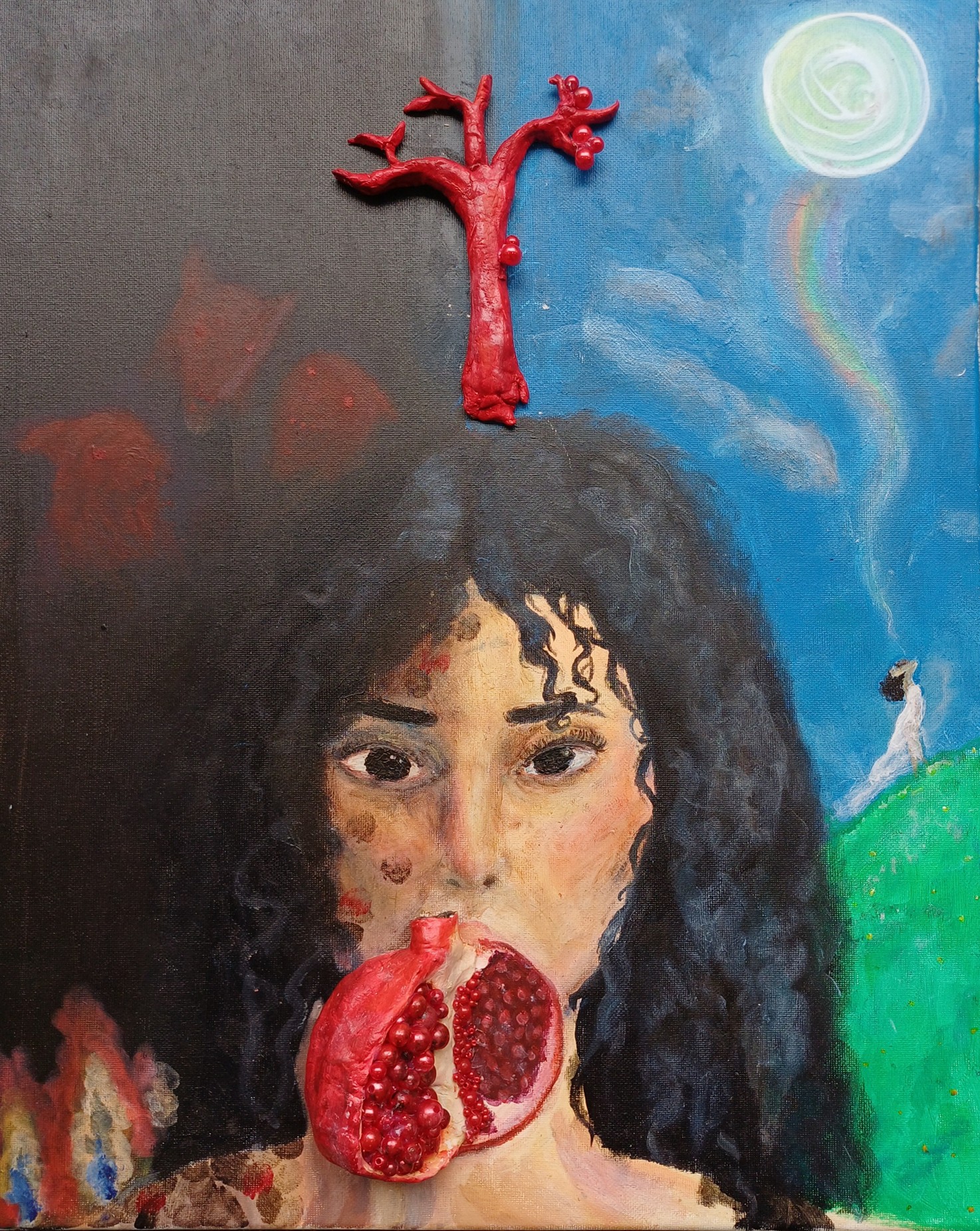 Acrylic, papier mache, beads, 39cm x 49cm
