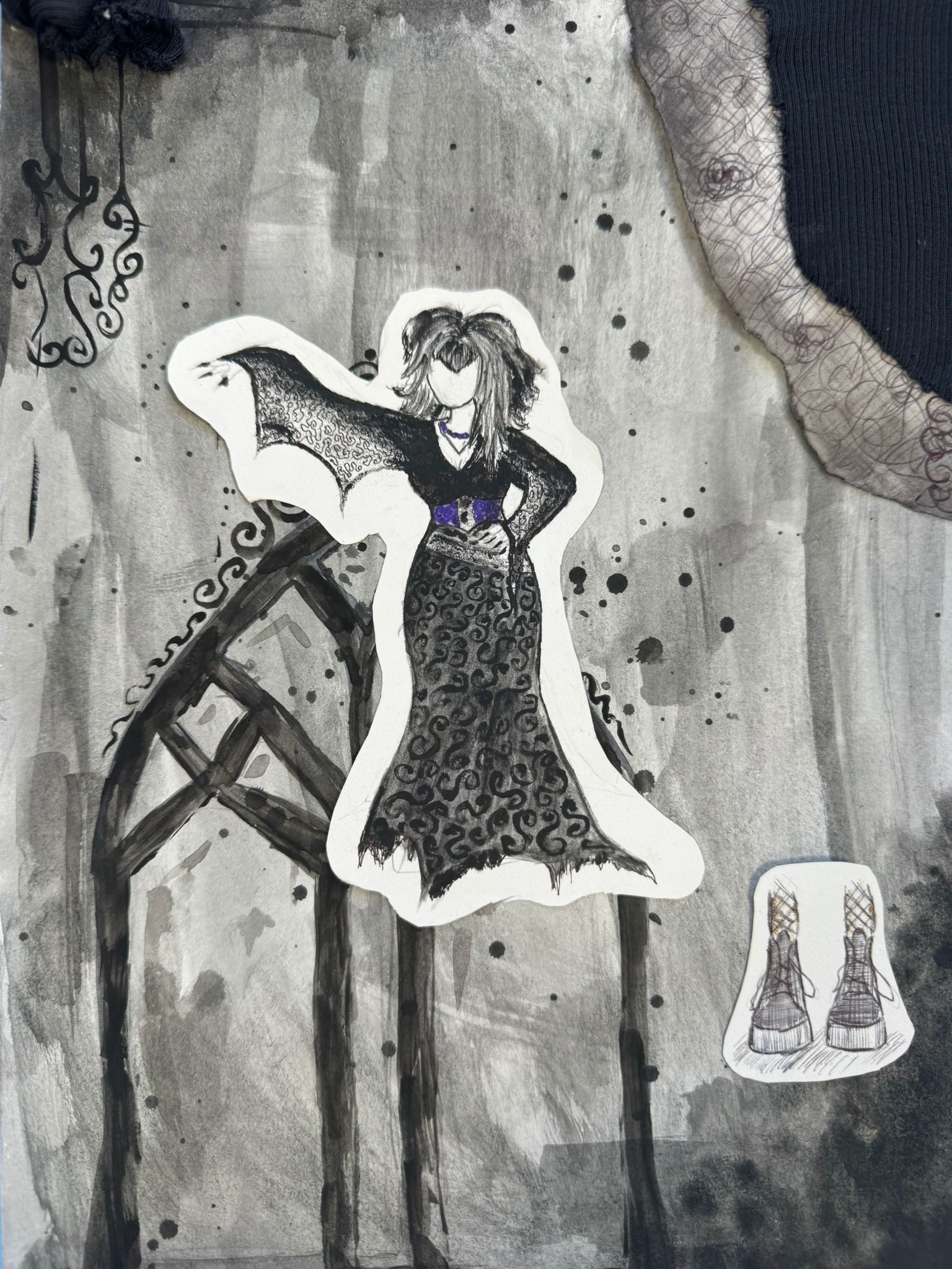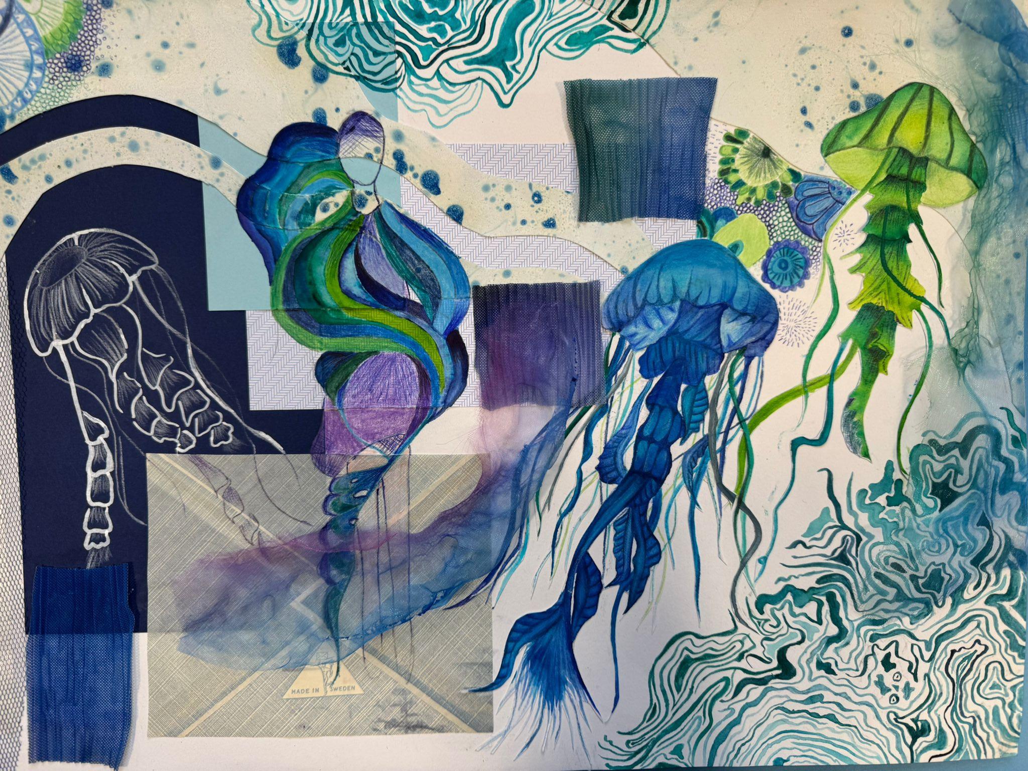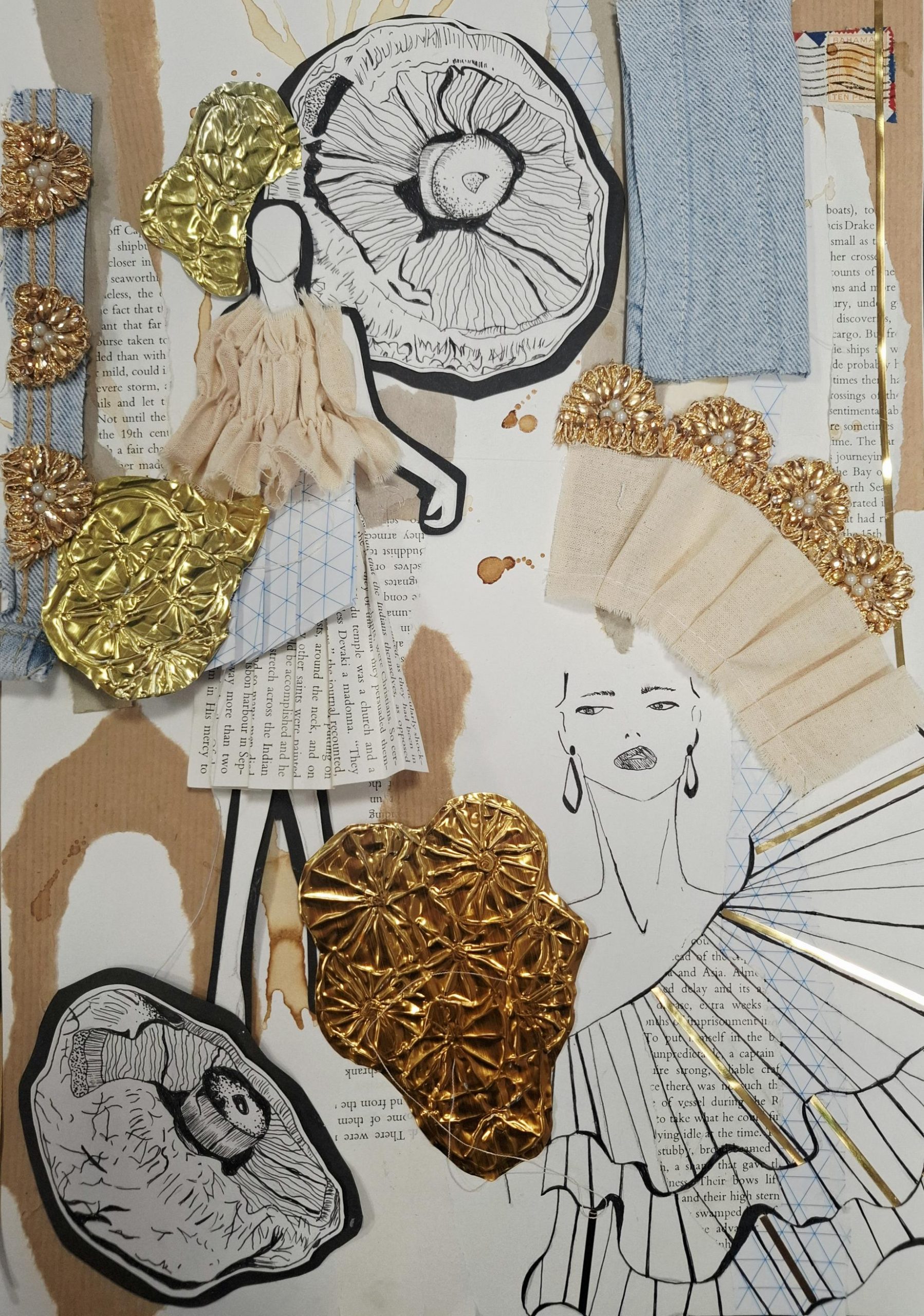Mixed Media: Pen, collage & stitch, 42cm x 30cm